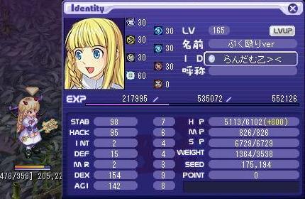 STAB 104 HACK 96 INT 1 DEF 15 MR 2 DEX 154 AGI 142